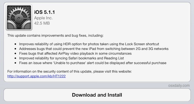 그럼 아이튠즈 화면에 "복구모드.. 어쩌고 저쩌고"라는 화면이 나온다. 여기서 시키는대로 "복구"를 눌러주고 몇번 하라는 대로 따라하면 (화면은 생략.. 너무 간단한 일이다), iPad 2를 위한 새로운 IOS가 있다고 알려주고 (현재는 IOS 5.1.1) 다운받고, 설치하겠는데 동의하냐고 물어보고 설치를 한다.